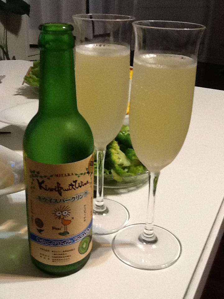 こちら三鷹産キウイフルーツから醸造した「三鷹キウイワイン」4種類のうち、「スパークリング」です。